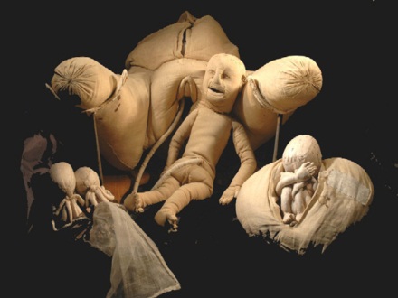 Although hundreds of mannequins were produced, only one complete model is still in existence and on display in the Musee Flaubert in Rouen. The purpose of the mannequins, or “machines,” was to educate women regarding anatomy, as well as to help practice for both normal and rare circumstances. The mannequins were made from fabric, leather, and bone, and were created as close to life-like as possible. In addition to the basic anatomy, du Coudray included a fabric infant (both normal and abnormal presentations) and other components, such as fluids, necessary for a midwife’s education.
